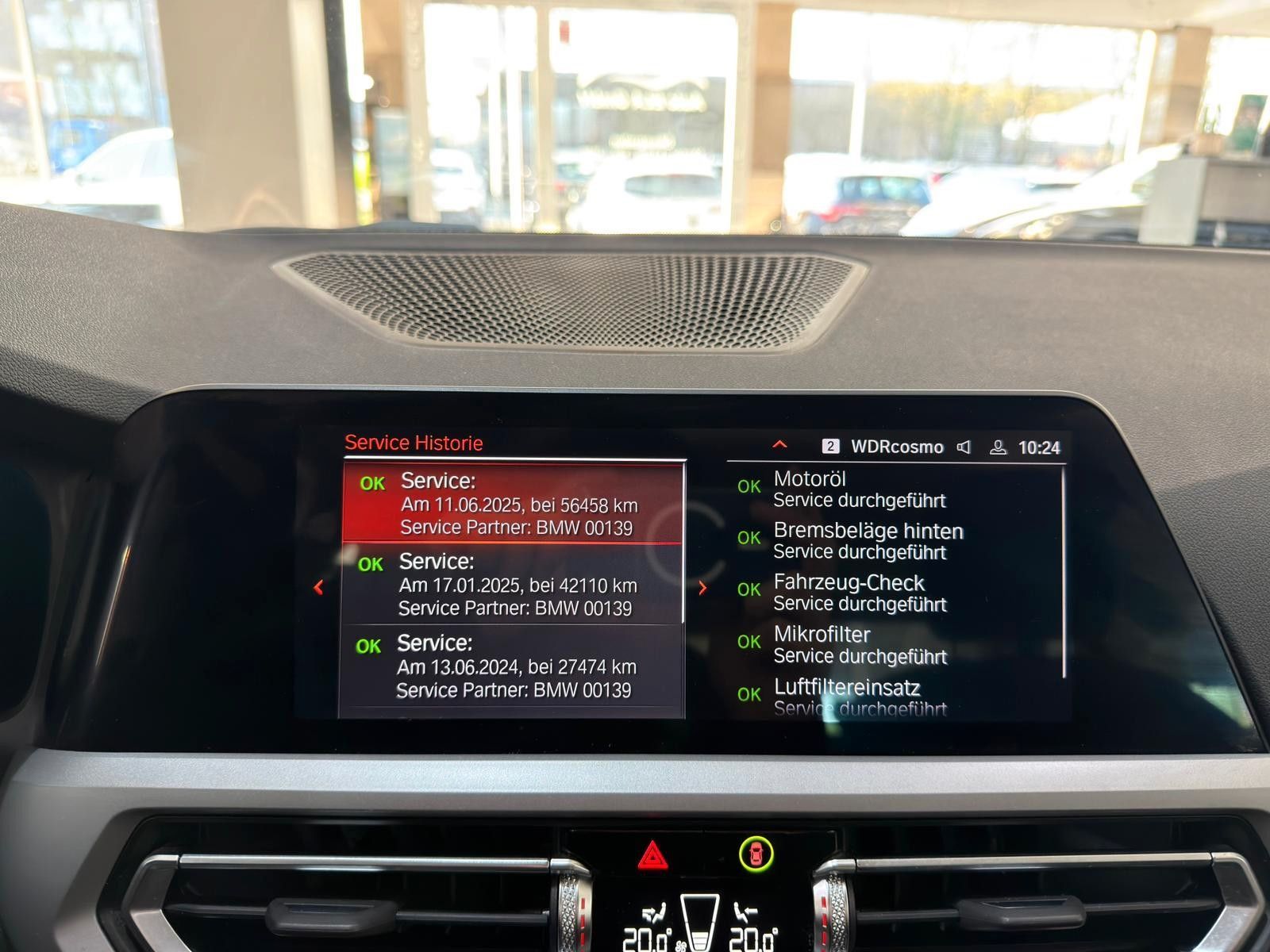 bei 27.474 KM im Juni 2024 (Inspektion, Bremsbeläge hinten, Mikrofilter, Luftfilter)