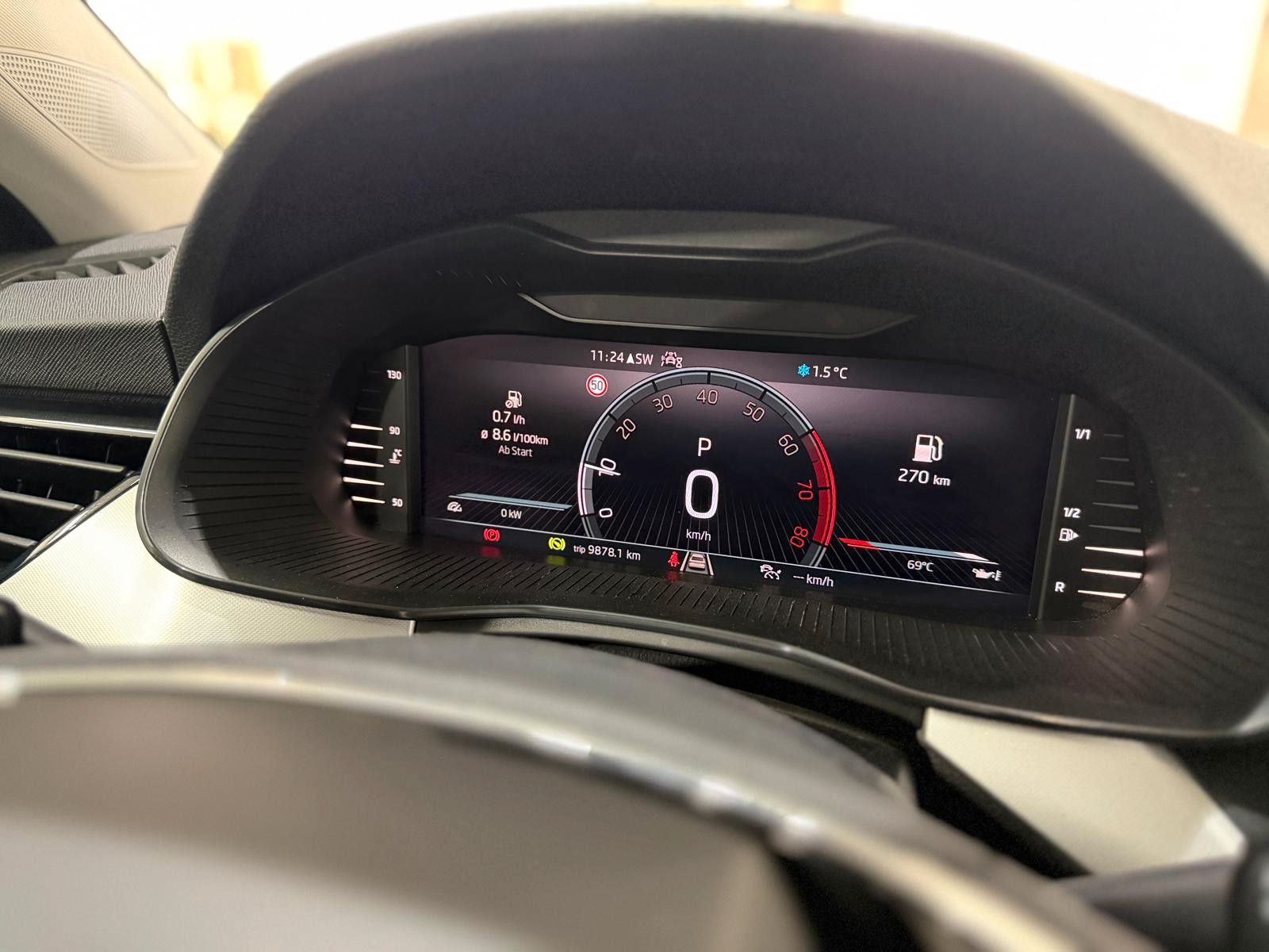 Anhängerkupplung (Kugelkopf mit elektr. Entriegelung, schwenkbar) inkl. Adapter, Einparkhilfe vorn und hinten, Fahrassistenz-System: Autom. Distanzregelung (ACC) mit Frontradar-Assistent (bis 210 km/h), Fensterheber elektrisch vorn + hinten, Innenausstattung: Dekoreinlagen Silber, Klimaanlage Climatronic 2-Zonen, Kombiinstrument digital (virtual cockpit), Perleffekt-Lackierung, Reserverad als Notrad, Rückfahrkamera, Sitz vorn rechts höhenverstellbar, Sprachsteuerung für Infotainment-System, Wireless SmartLink